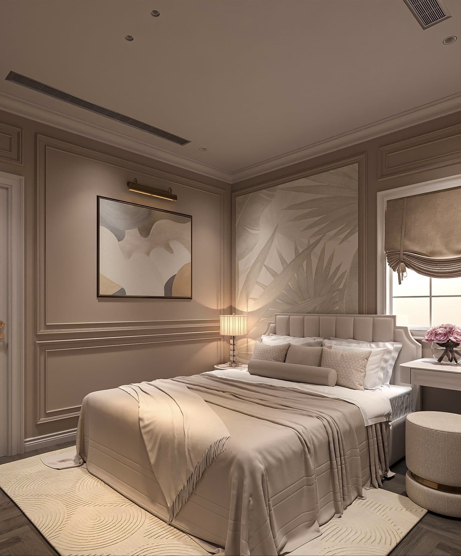 Phòng ngủ master không gian được chủ nhà yêu thích nhất với thiết kế vô cùng thanh lịch, trang nhã.